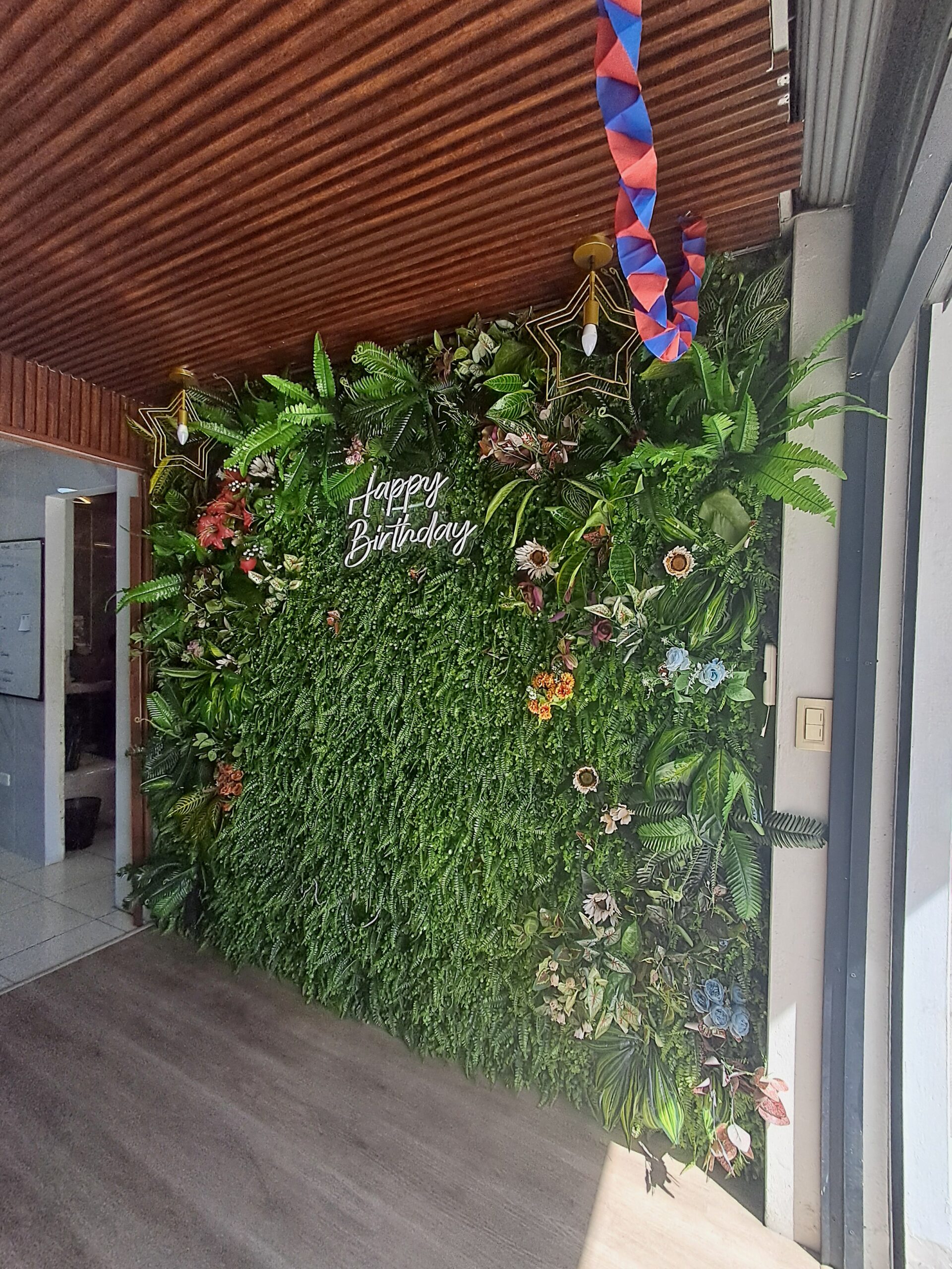 Paredes verdes decorativas sin mantenimiento Paneles con acabado natural, resistentes al sol y humedad. Ideales para interiores y exteriores.