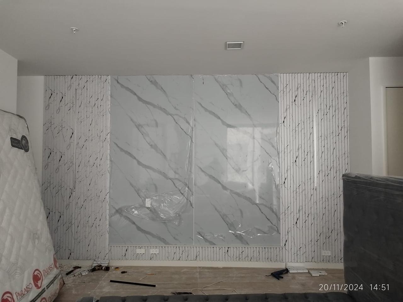 Planchas adhesivas de gran formato estilo mármol Transforma paredes sin obra, con acabados realistas y elegantes para áreas como salas, recepciones y cocinas.