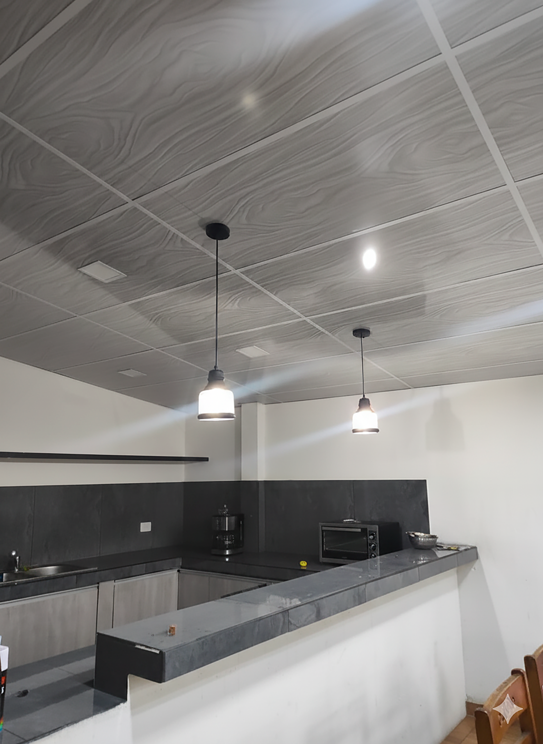 Revestimiento moderno y resistente para tumbados Perfecto para cocinas, baños y espacios que requieren durabilidad, facilidad de limpieza y estética contemporánea.